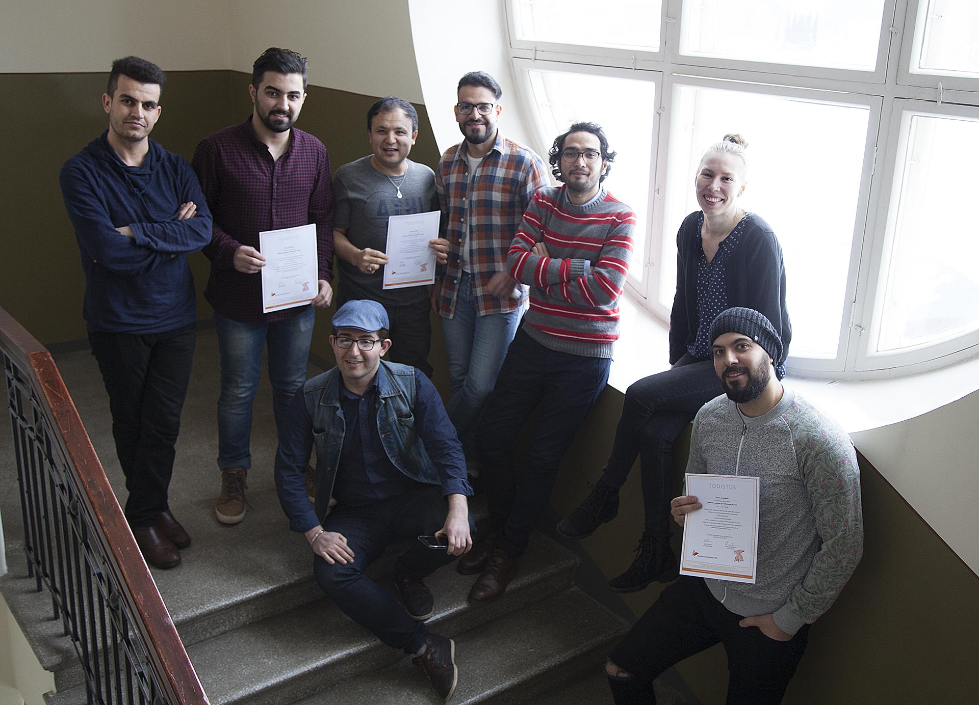 18.04.2018 Yhteiskunta ja osallisuus Kuva kertoo paljon Lähi-idän konfliktialueilta tulleet nuoret miehet kehittävät videopajassa suomen kielen osaamista...