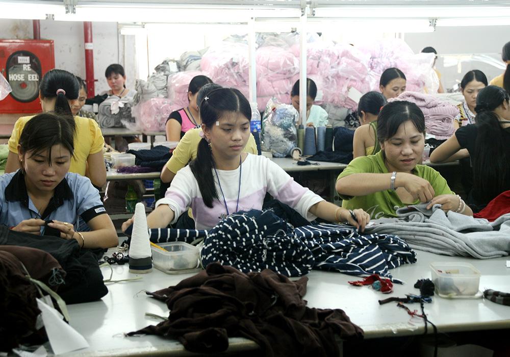 Vietnamilaiset vaatetehtaan työntekijät ahkeroivat muotivaatteita Ho Chi Minhissä myös Suomen markkinoille. Tehtaan omistajat ovat hongkongilaisia.