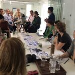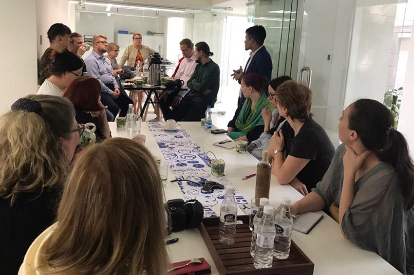 Pääsimme aika pian lähetystöön sisälle. Tapasimme siellä edustuston päällikön sijaisen Seija Kinnin sekä Katariina Oivon, joka toimii vastuuvirkamiehenä. Keskustelimme lähetystön roolista, tärkeimmistä tehtävistä ja yhteistyökuvioista Intiassa.