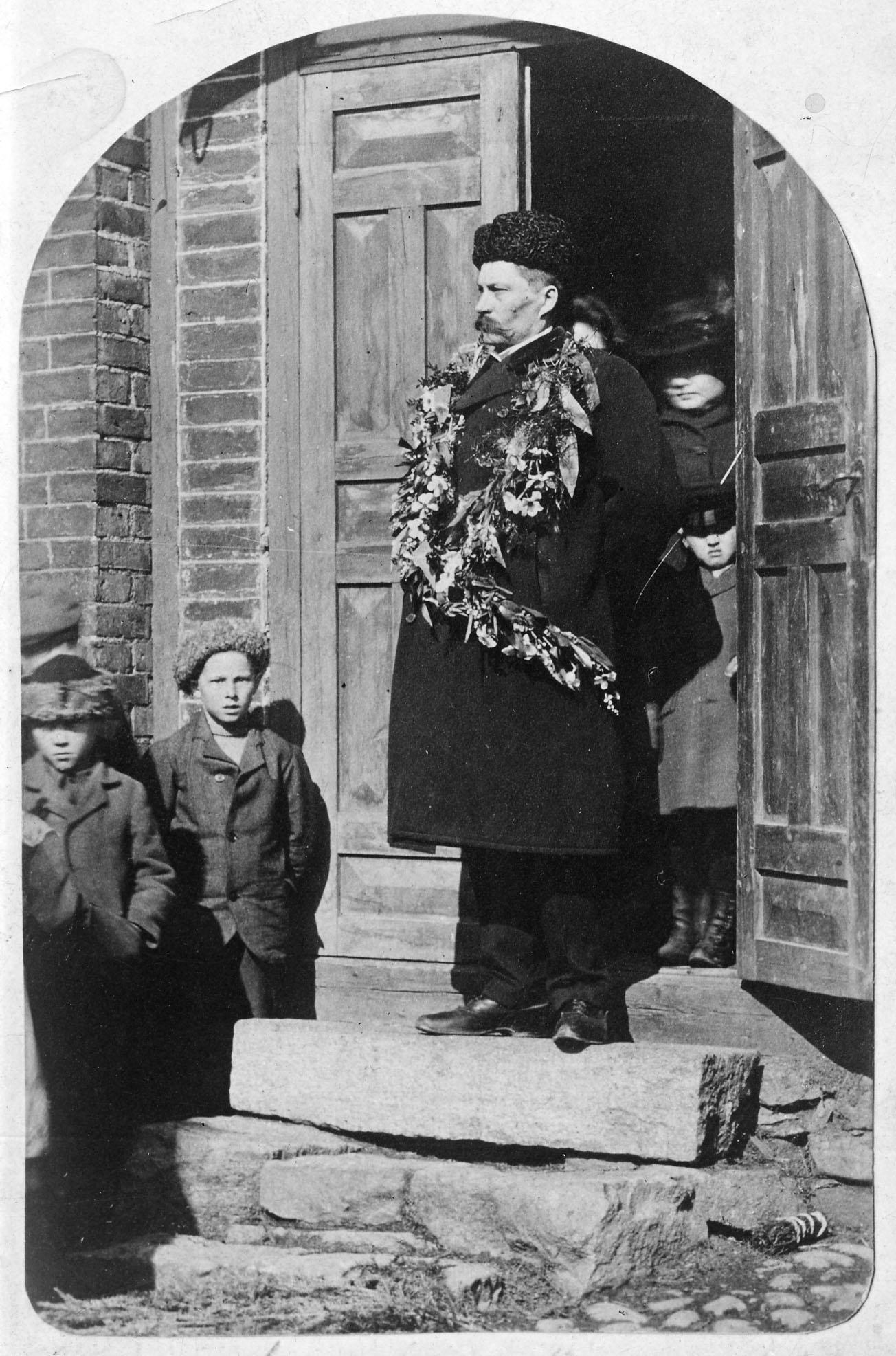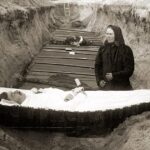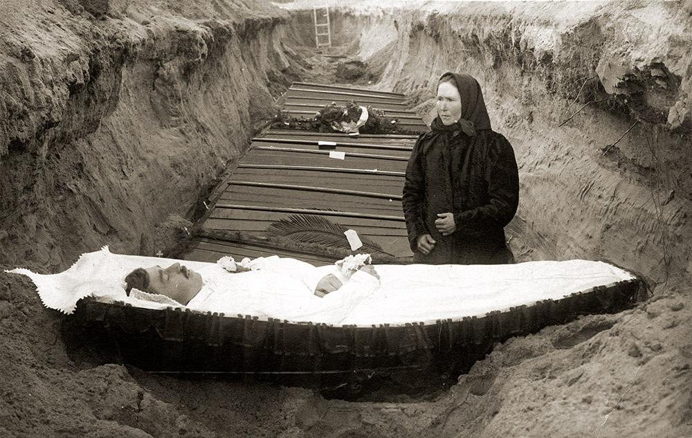 Satakunnan museon arkistoista löytyi kuva joukkohaudasta, jossa tuntemattomaksi jäänyt sureva leski on puolisonsa avoimen arkun äärellä.
